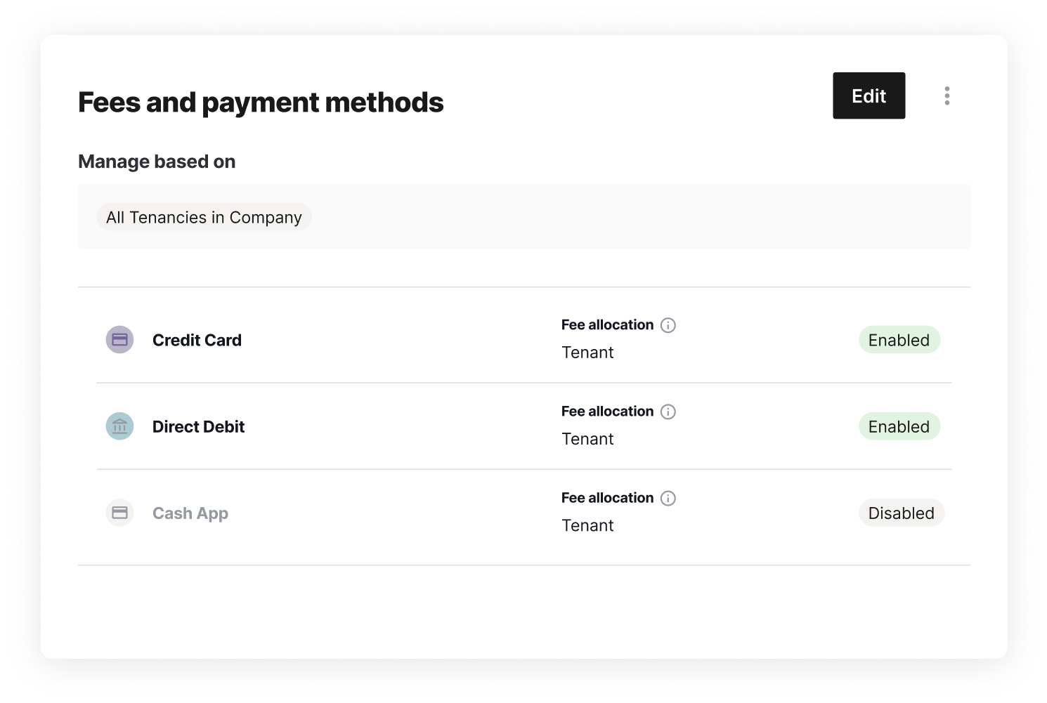 Helped Property managers easily choose who pays online payment fees while staying compliant— Replacing confusing percentage calculations with simple fee assignments and made sure tenants know exactly what they'll pay before checkout.